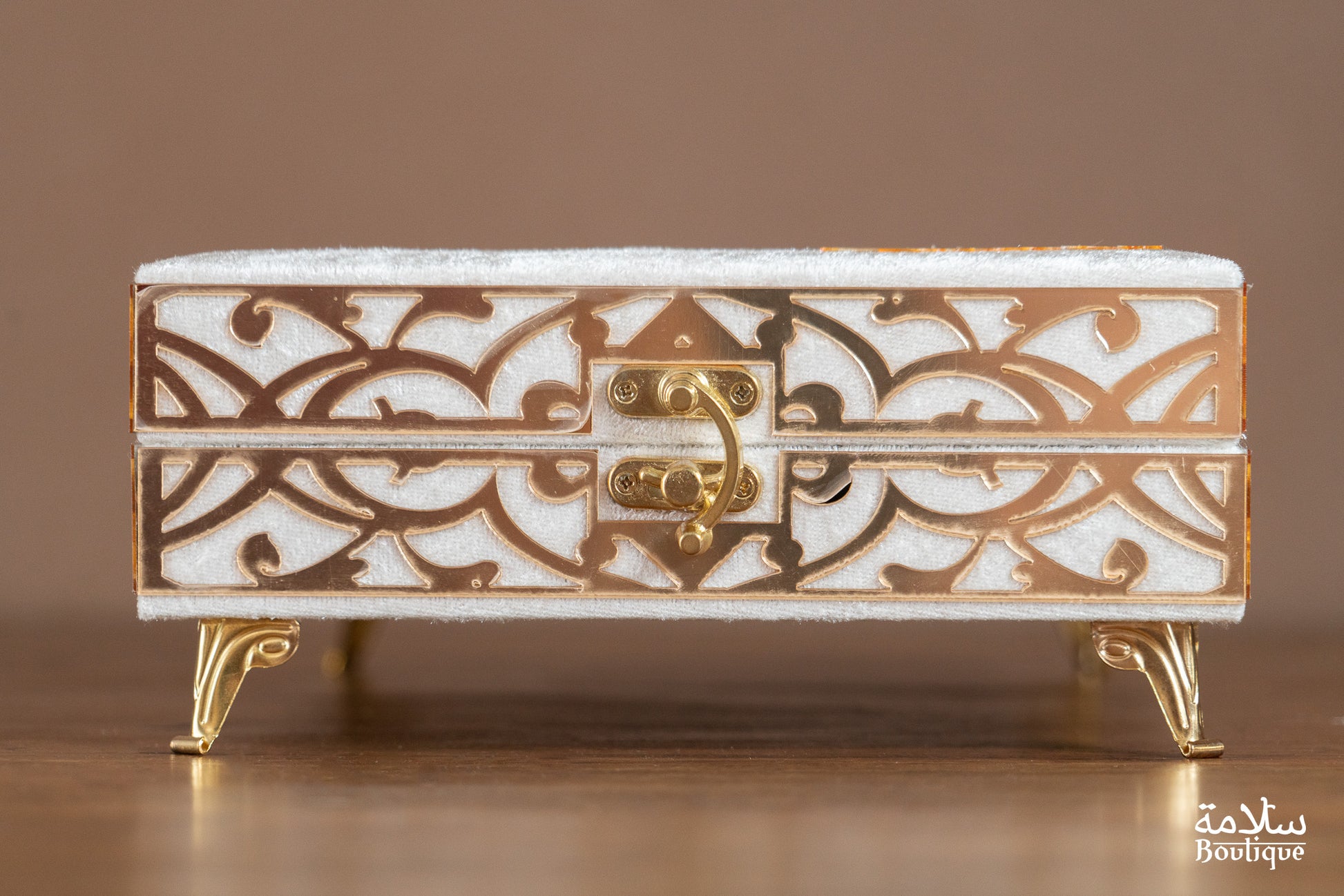 Découvrez notre magnifique coffret en velours blanc orné de finitions dorées. Avec son rabat élégant, il ajoute une touche luxueuse à votre collection. Sobre et élégant, il sera le parfait écrin pour vos livres sacrés. Offrez-vous un accessoire à la hauteur de votre raffinement !