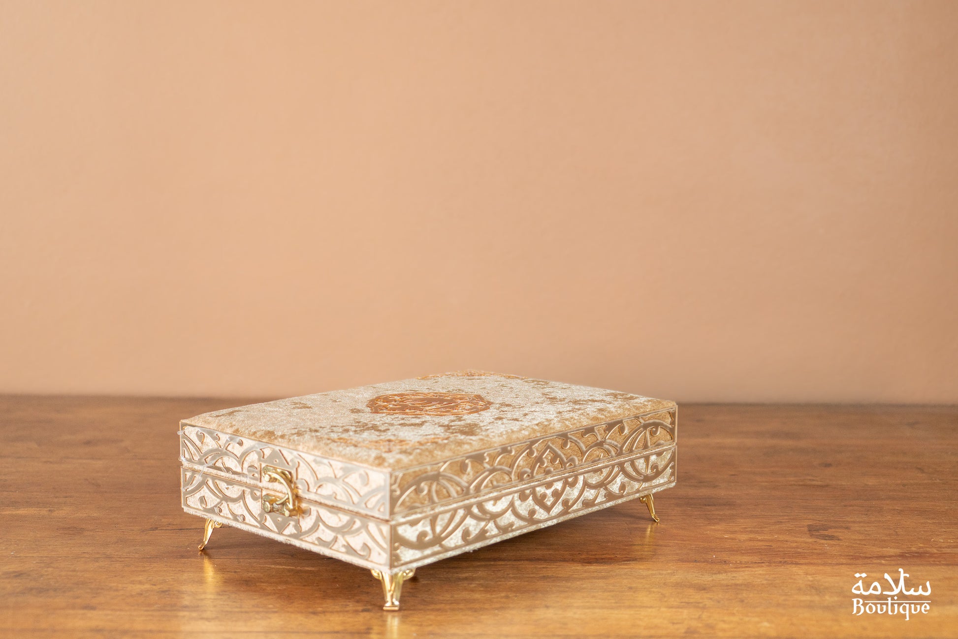 Découvrez notre magnifique coffret en velours dorée orné de finitions couleur or. Avec son rabat élégant, il ajoute une touche luxueuse à votre collection. Sobre et élégant, il sera le parfait écrin pour vos livres sacrés. Offrez-vous un accessoire à la hauteur de votre raffinement !