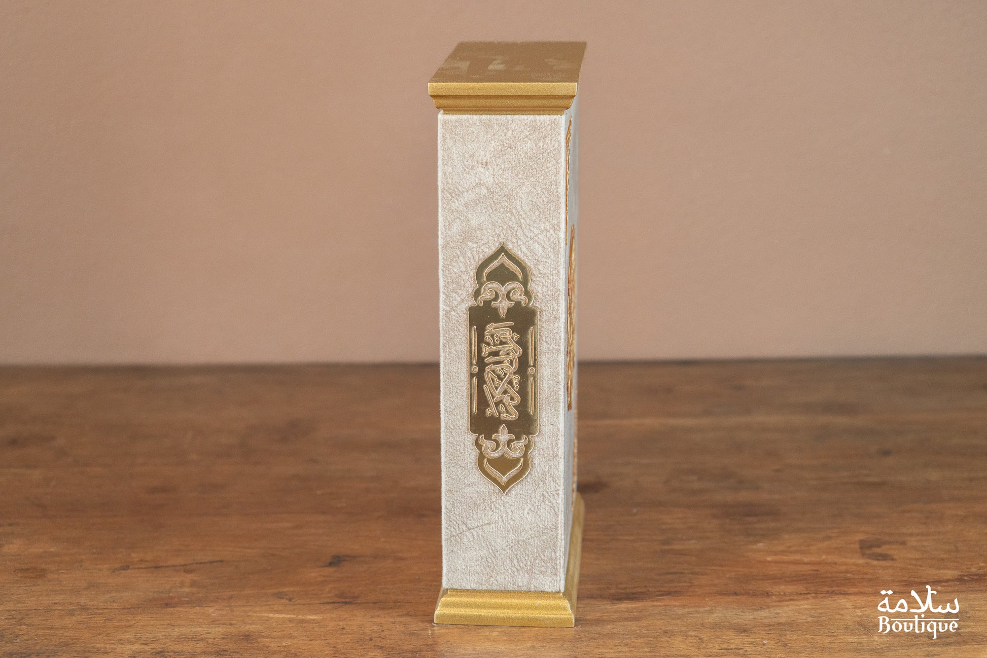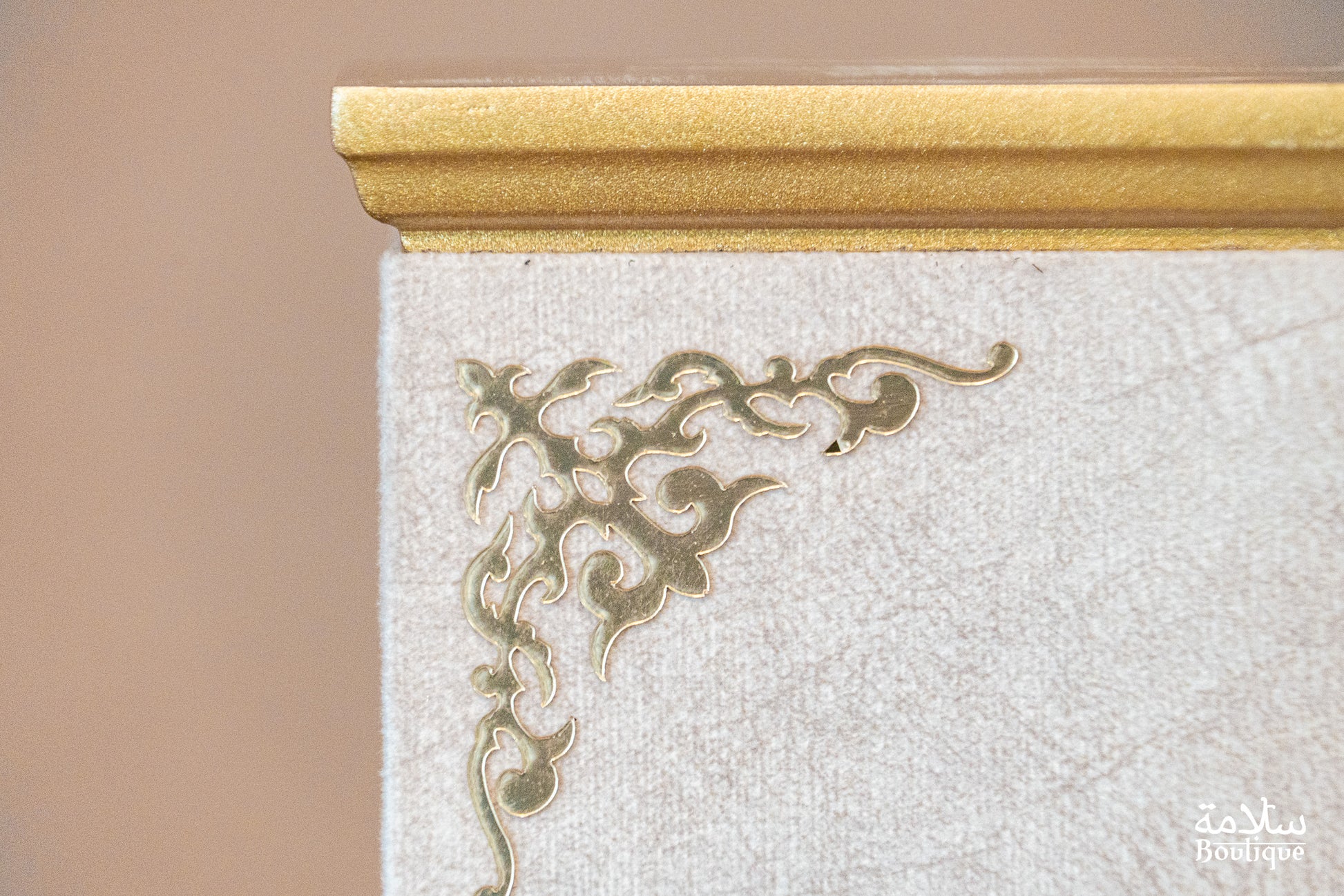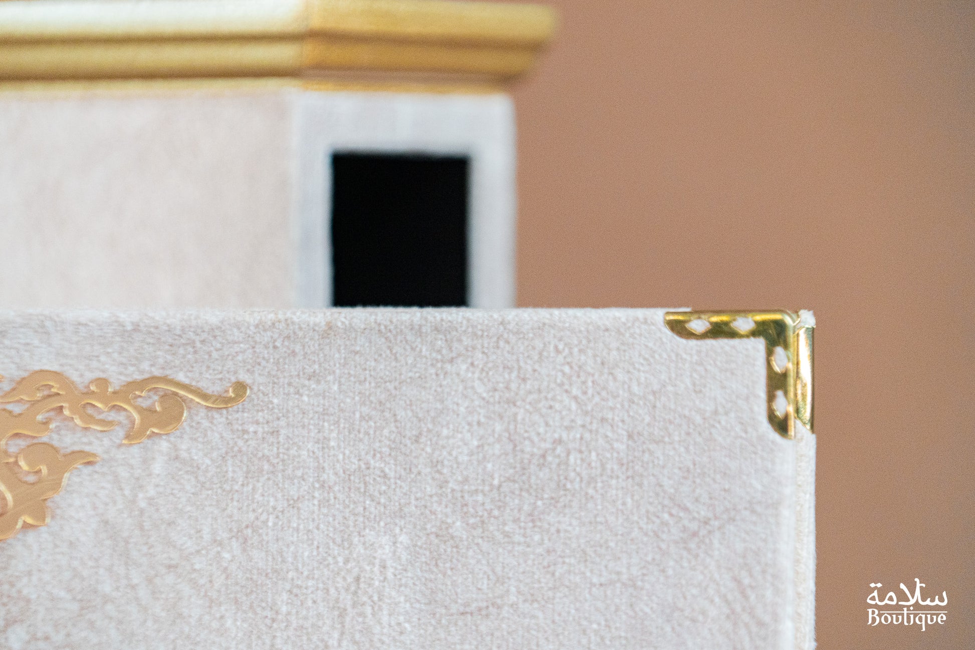 Découvrez notre coffret velours blanc cassé avec couronnement et socle en moulure dorée pour un look chic et élégant. Son ornement doré ajoute une touche de douceur et en fait un must-have pour toute collection. De plus ses coins en métal solide le protègera en toutes situations, en lui apportant une touche d'élégance.Laissez-vous séduire par son charme incontournable !