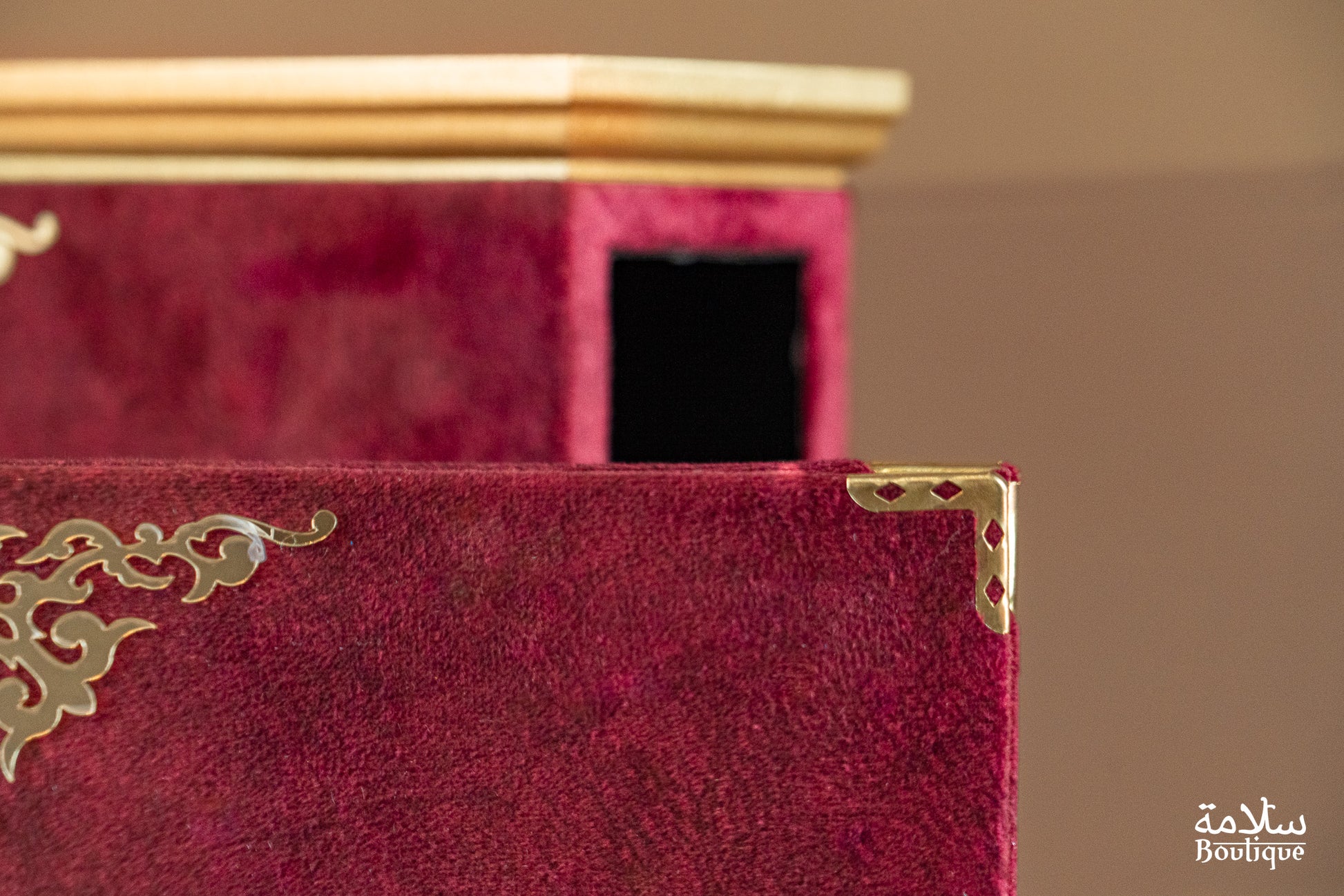 Découvrez notre coffret velours rouge avec couronnement et socle en moulure dorée pour un look chic et élégant. Son ornement doré ajoute une touche de douceur et en fait un must-have pour toute collection. De plus ses coins en métal solide le protègera en toutes situations, en lui apportant une touche d'élégance.Laissez-vous séduire par son charme incontournable !