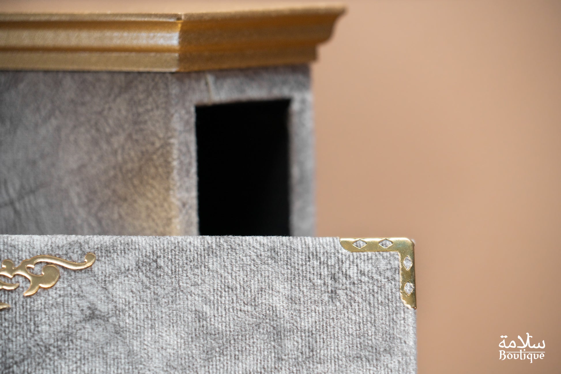 Découvrez notre coffret velours argent avec couronnement et socle en moulure dorée pour un look chic et élégant. Son ornement doré ajoute une touche de douceur et en fait un must-have pour toute collection. De plus ses coins en métal solide le protègera en toutes situations, en lui apportant une touche d'élégance.Laissez-vous séduire par son charme incontournable !