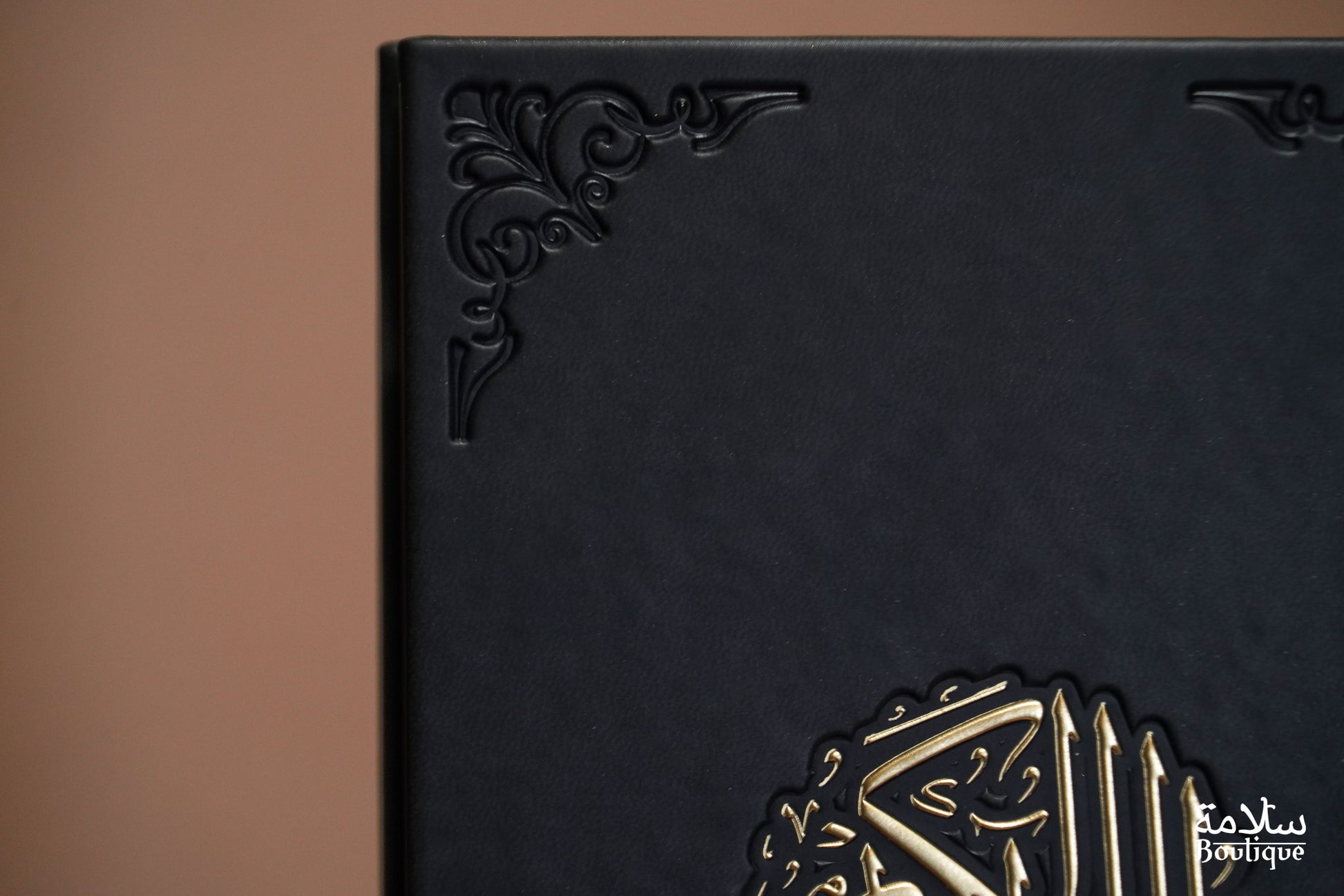 Plongez dans une lecture profonde et apaisante avec ce magnifique Coran noir, orné de détails en creux. Sa couleur noire apporte une touche de caractère tandis que sa texture agréable au touché offre une expérience de lecture confortable. Le Saint-Coran qui allie à la fois le classique et le classe.