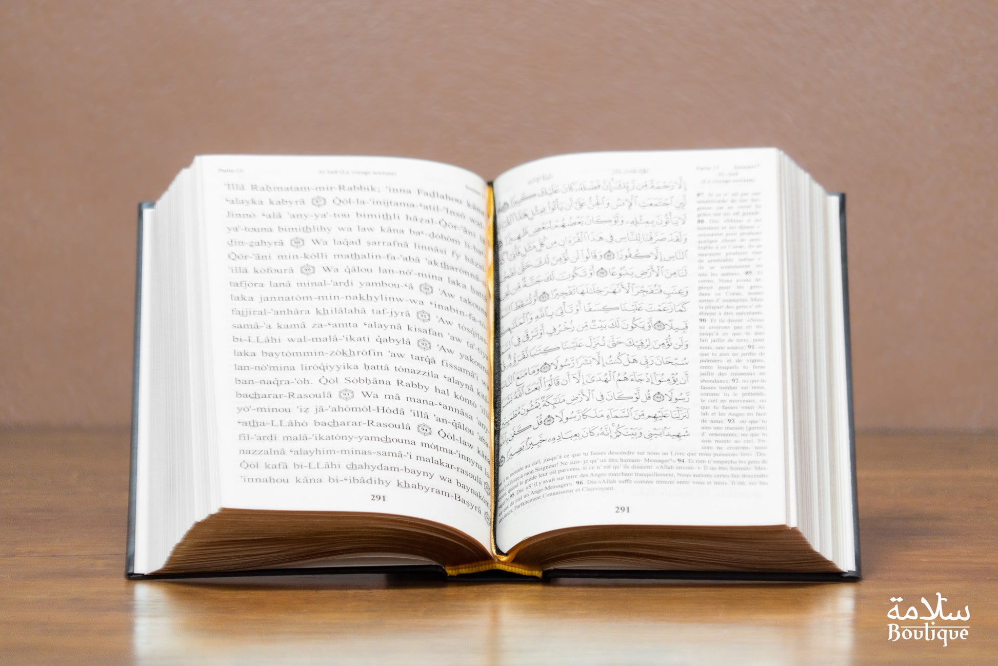Coran en Arabe avec la traduction française et la transcription phonétique.