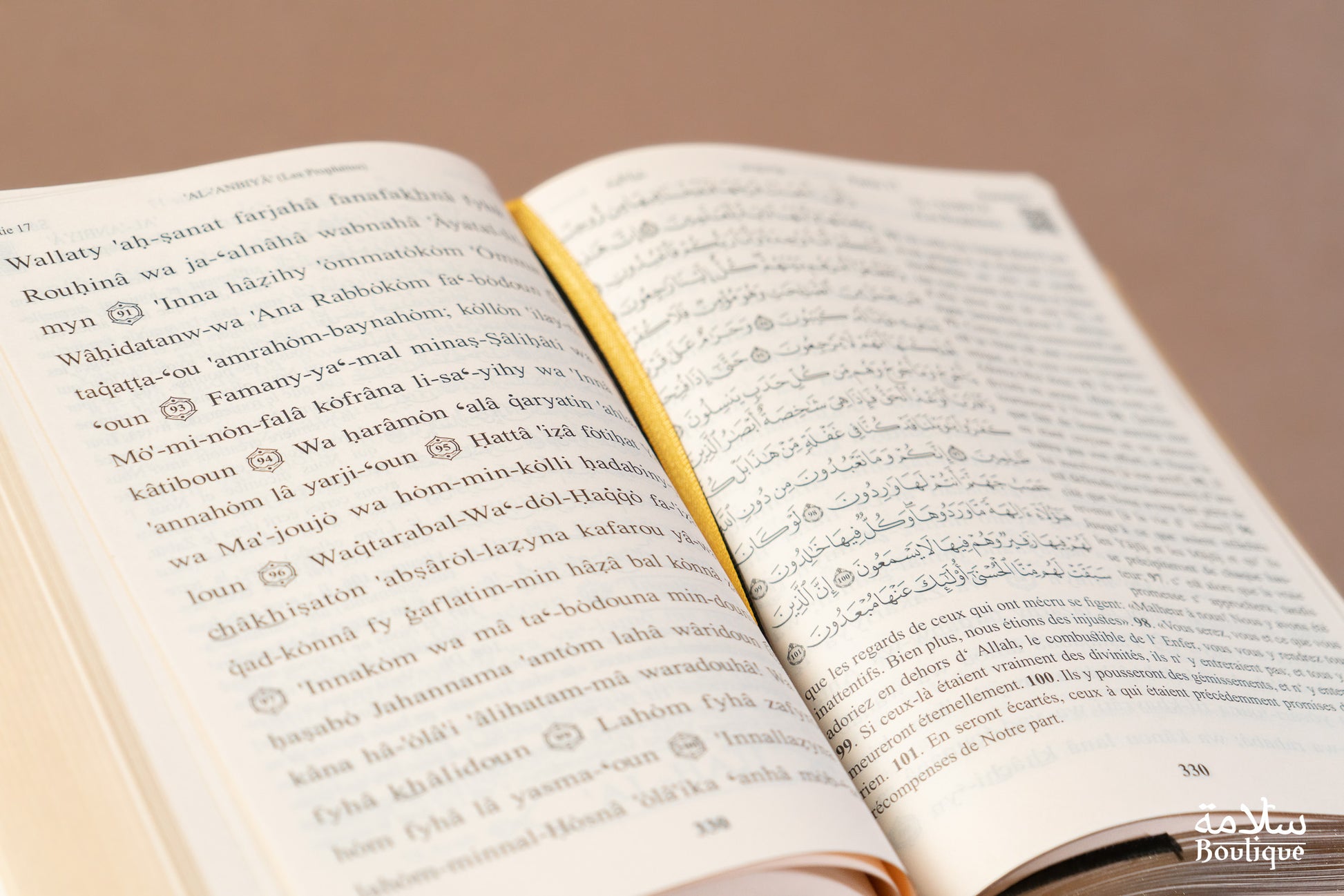 Coran en Arabe avec la traduction française et la transcription phonétique.