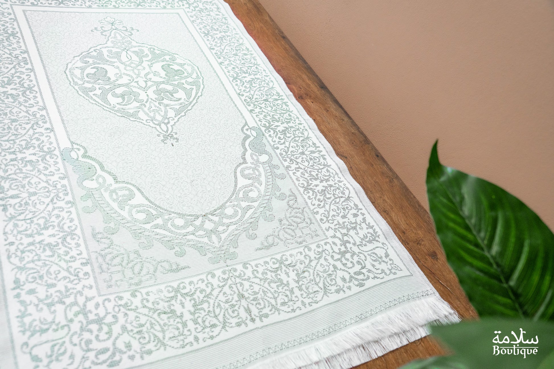 TAPIS PRIERE BLANC VERT OLIVE METALLISE