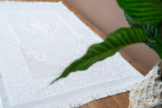 TAPIS DE PRIERE BLANC GRIS METALLISE
